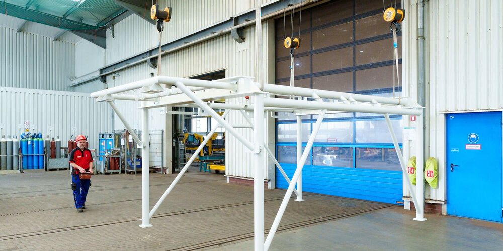 Der weltweit eingesetzte LHM-550-Hafenmobilkran von der Liebherr-Rostock GmbH hebt Lasten bis zu 154 Tonnen – bei einem Eigengewicht von rund 400 Tonnen. Damit er seinen Job ohne Schieflage erledigen kann, benötigt er stabilisierende Abstützplatten, auch bekannt als Pratzen. Für jeden LHM-550- und LHM-420-Kran, der das Liebherr-Werk in Rostock verlässt, fertigen wir die vier Abstützplatten – als zuverlässiger Partner und erfahrener Stahlbauer, der für Qualität, Fertigungskompetenz und Termintreue steht.