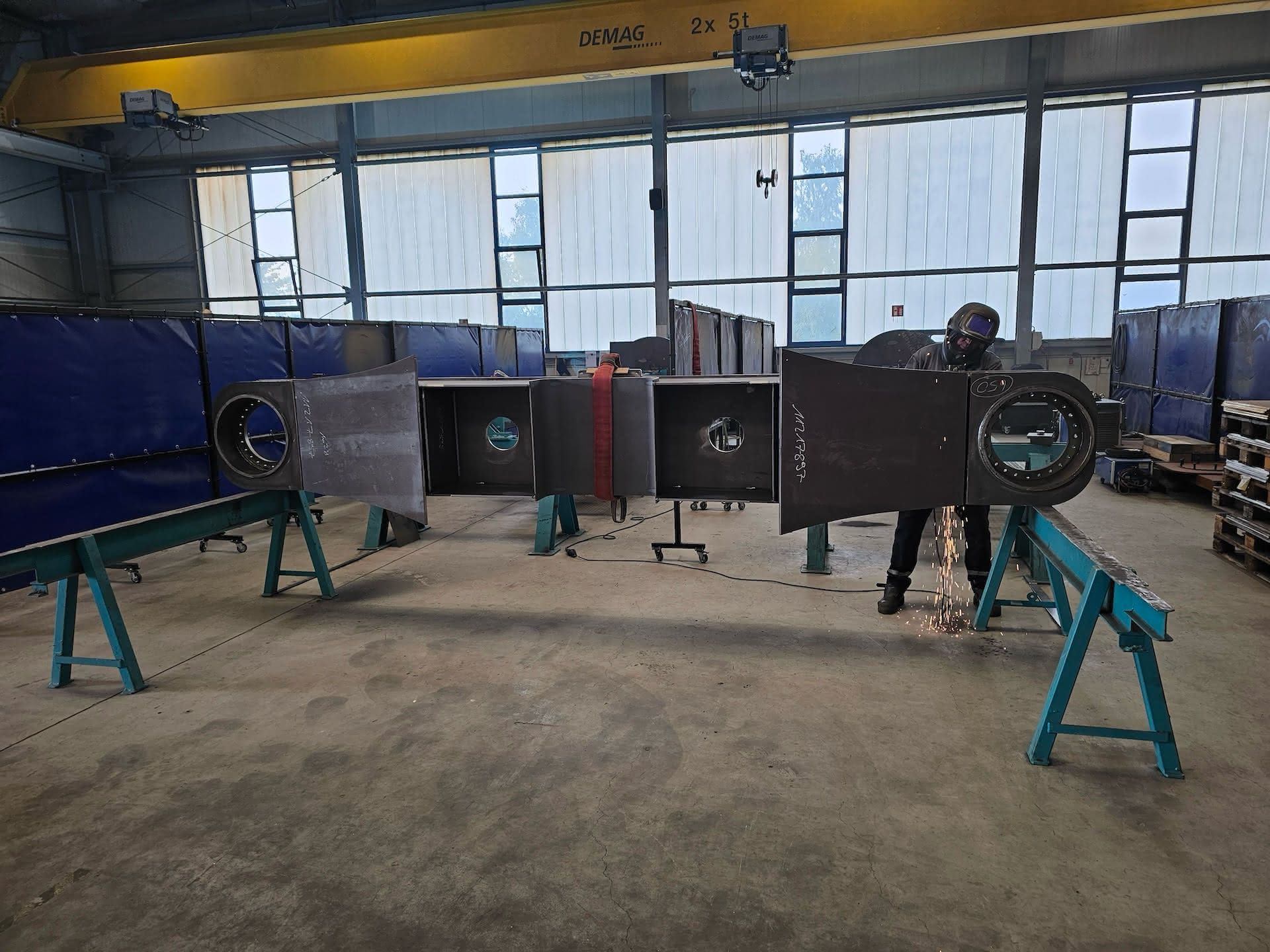 - Einzelteile verschweißen und Ultraschallprüfung der Schweißnähte